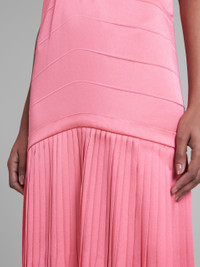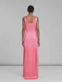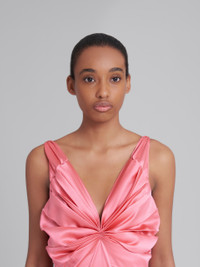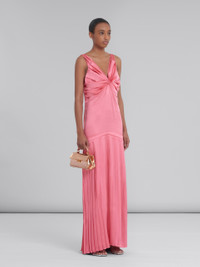 DRAPED LONG DRESS IN PINK CRÊPE SATIN