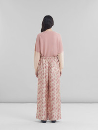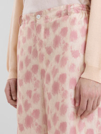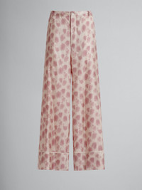 DUSTY PINK SILK PALAZZO TROUSERS WITH CRAYON LEOPARD PRINT