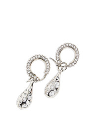 crystal-embellished hoop earrings Highlights - Silver tone - Hoop design - Crystal embellishment - Teardrop pendant - Pave setting - Hook fastening Imported