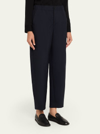 Marni trousers with an elasticized waistband Mid rise sits high on hip Angled side slip pockets Back welt pockets Straight legs Full length Button/zip fly Virgin wool Lining: Viscose Dry clean Made in Italy Online Inquiries: BGS21_BA3KL| Store Inquiries: #5025401