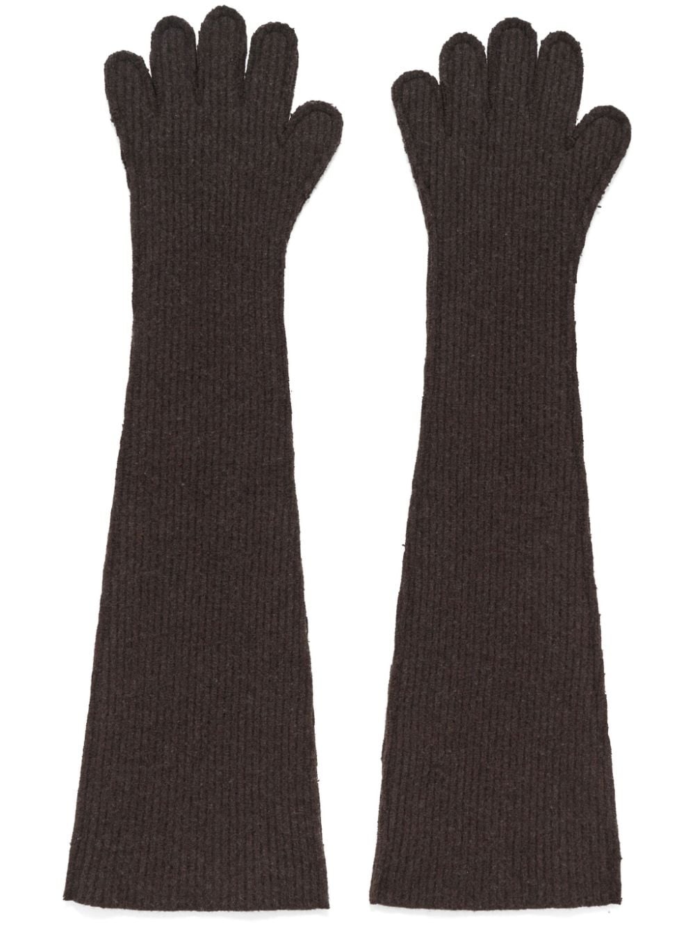 elbow-length gloves Highlights - Coffee brown - Virgin wool - Ribbed knit - Full-finger design - Elbow length Made in Italy Composition Virgin Wool 100%