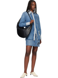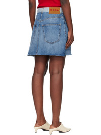 Non-stretch denim miniskirt. · Raw edges, whiskering, and fading throughout · Belt loops · Five-pocket styling · Zip fly · Embroidered floral graphics and hand-stitched patch at front · Suede logo patch at back waistband · Logo-engraved silver-tone hardware · Contrast stitching in tan Supplier color: Azure Body: 100% cotton. Trim: 100% leather. Pocket lining: 65% polyester, 35% cotton. Made in Italy 252379F090000