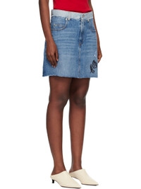 Blue Stone Washed Patches Denim Miniskirt