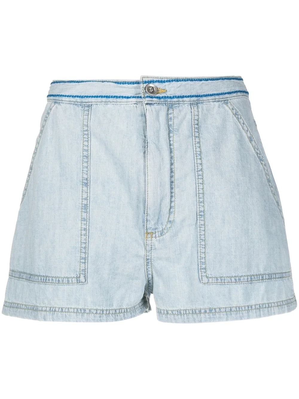 embroidered-logo denim shorts Highlights - Light blue - Cotton - Embroidered logo to the rear - Front button and zip fastening - Two side inset pockets - Two rear patch pockets Made in Italy Composition Cotton 100% Washing instructions Machine Wash