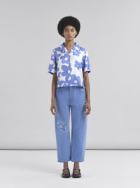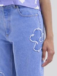 Boyfriend jeans cut from washed organic cotton denim, with raw-cut Dillies flower patches. Ankle-length with low waist and straight leg. Leather label with red Marni logo at the back of the waist. Zip and tack button closure. Made in Italy MODEL PAJD0425Q2USCX34PCB44 FIT The model is 5' 9''. The model is wearing size 40 IT. COMPOSITION Primary Fabric: 100% Cotton Woven - Pocket Lining: 65% Polyester Woven 35% Cotton Woven - Application: 100% Calf Leather