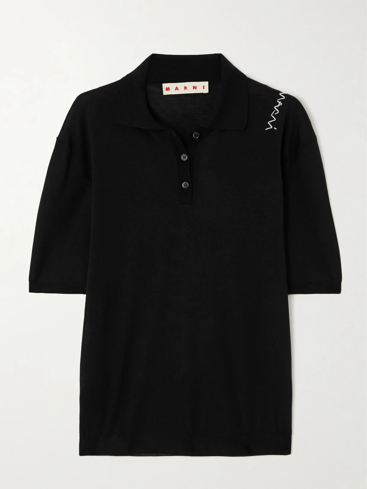 Marni's polo shirt offers timeless appeal with a subtle a twist. Made from a wool and silk-blend, it's embroidered with the logo in contrasting threads along the dropped shoulder and has a relaxed shape with a neat collar.
