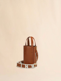 North/South tote bag, nano size, in calf leather with internal slot pocket. Leather top handles and detachable shoulder strap, adjustable with buckle. Gold hardware. Gold printed logo outside. Made in Italy. Made in Italy MODEL SHMP0050U0LV63900M66 COMPOSITION Body: 100% Calf Leather - Inside: 100% Calf Leather - Contrast: 100% Polyester - Lining: 55% Cotton 45% Polyurethane - Metallic Parts: 100% Zama - Metallic Parts: 100% Brass