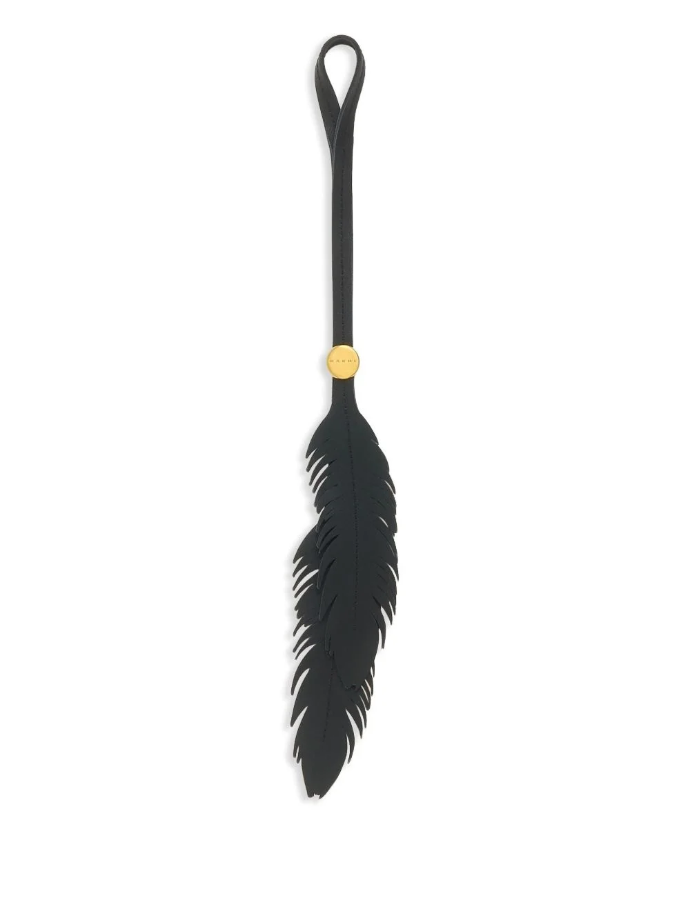 feather leather charm Highlights - Black - Engraved logo - Gold-tone hardware Made in Italy Composition Calf Leather 100%, Brass 100%