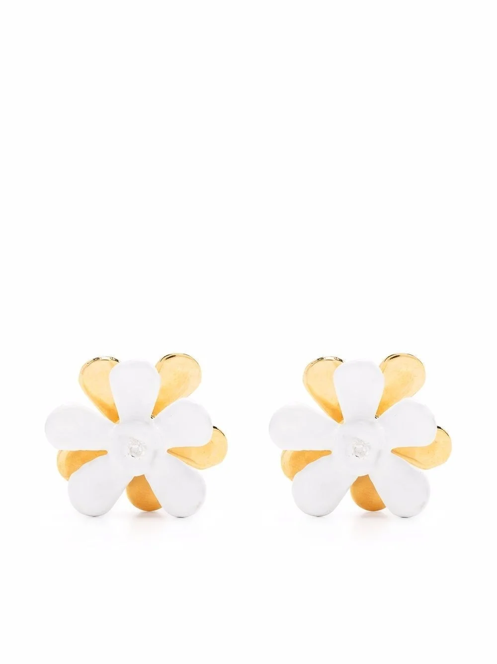 floral applique stud earrings white/ gold-tone brass floral detail crystal embellishment engraved logo These earrings come as a pair. Made in Italy SIZE & FIT Model measurements Height 5 ft 10 in(1.79 m) Bust/Chest 33.07 in(84 cm) Hips 35.82 in(91 cm) Waist 24.01 in(61 cm)