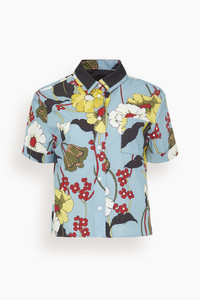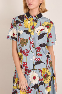 The Marni Short Sleeve Shirt is crafted in their must-have print of the season. You'll love the boxy silhouette of this top with a retro inspired floral pattern. Wear yours with the matching skirt and loafers. FIT DESCRIPTION MODEL MEASUREMENTS - Fits true to size, take your normal size - Short sleeve shirt - Button front - Boxy silhouette - 100% Cotton - Harriet is wearing a size 38/ 2 US - Bust: 32" - Waist: 24" - Hips: 30.5" - Height: 5’8.5”