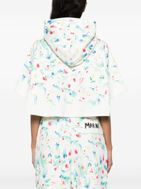 floral-print cotton hoodie Highlights - White/multicolour - Cotton - Jersey texture - All-over floral print - Watercolour effect - Logo print to the front - Drawstring hood - Short sleeves - Cropped straight hem - French terry lining Made in Italy Composition Cotton 100% SIZE & FIT Model measurements Height 5 ft 9 in(1.76 m) Bust/Chest 31.1 in(79 cm) Hips 36.61 in(93 cm) Waist 24.8 in(63 cm) FittingInformation Designed to be unstructured, offering a loose fit throughout Cropped in length Made from a midweight non-stretch fabric, this piece offers minimal elasticity when worn This piece fits true to size – take your usual size Washing instructions Machine Wash