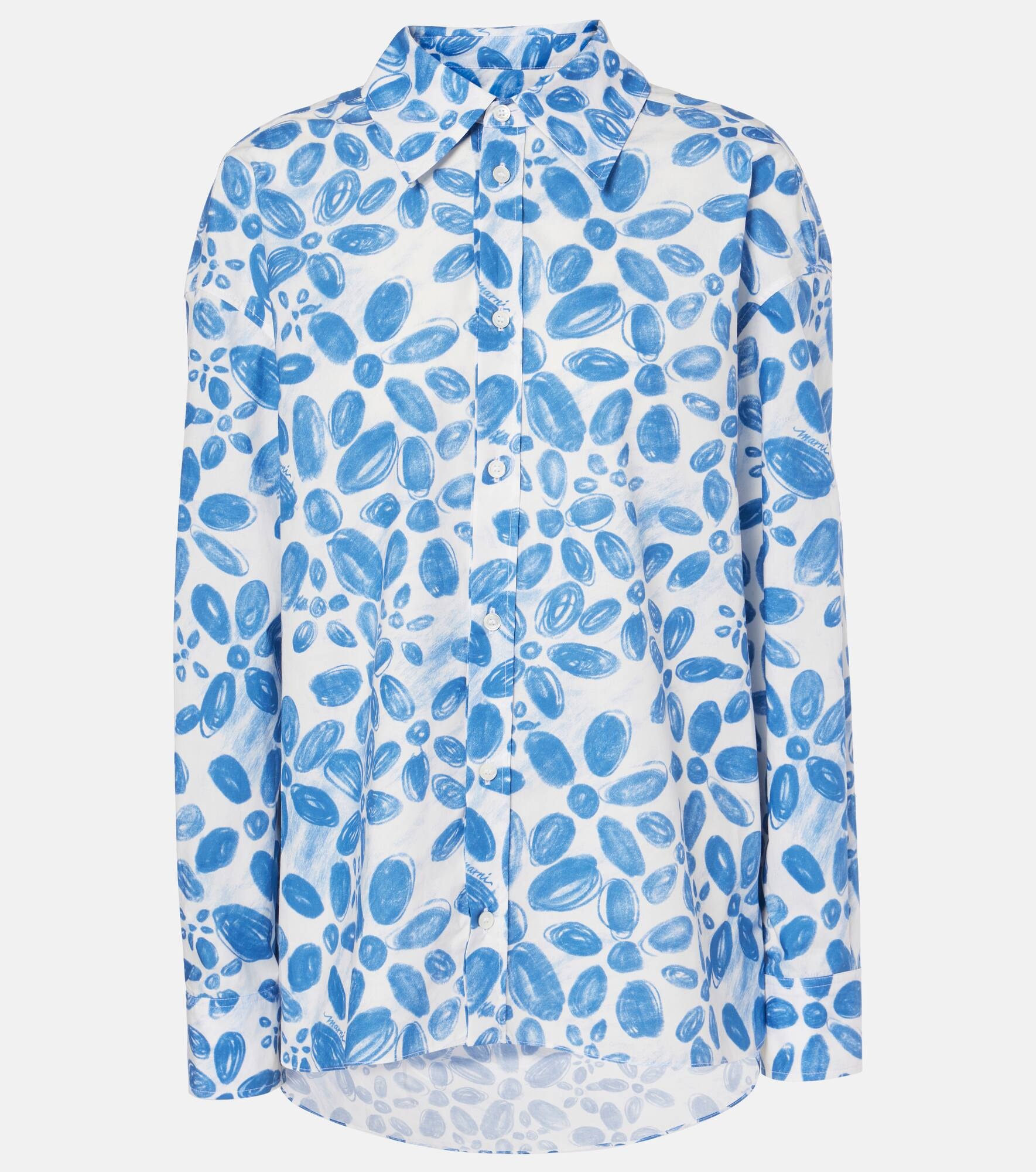 Product Details - Material: 100% cotton - Care instructions: machine wash at 30 degrees - Made in Romania - Designer color name: Iris Blue - Closure: buttoned front - Item number: P00957108 Size & Fit - True to size - Dropped shoulders - Designed for a loose fit - Non-stretchy fabric - Falls below the hip - The model seen in the picture is 178cm-5'10" and wearing a size IT 40