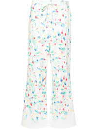 floral-print cotton track pants Highlights - White/multicolour - Cotton - Jersey texture - All-over floral print - Watercolour effect - Logo patch to the rear - Elasticated drawstring waistband - Wide leg - Two side slit pockets - Straight hem Made in Italy Composition Cotton 100% SIZE & FIT Model measurements Height 5 ft 9 in(1.76 m) Bust/Chest 31.1 in(79 cm) Hips 36.61 in(93 cm) Waist 24.8 in(63 cm)
