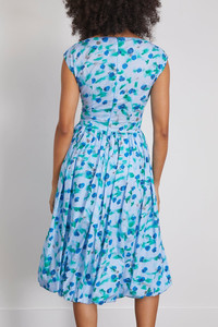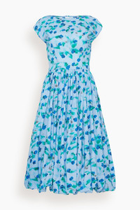 The Marni Reverie Sleeveless Poplin Dress in Light Blue is a midi dress made from printed bio cotton poplin. Fitted bodice with darts, cinching in at the waist. Gathered balloon skirt. We love it styled with your favorite sandals and a tote. - Fits true to size, take your normal size - Cap sleeves - Straight neckline - Balloon skirt - 100% Cotton Woven