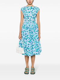 floral-print midi dress Highlights - Sky blue - Cotton - Floral print - Boat neck - Cap sleeves - Rear zip fastening - A-line - Puffball hem - Mid-length Made in Italy Composition Body: Cotton 100% SIZE & FIT Model measurements Height 5 ft 10 in(1.77 m) Bust/Chest 30.31 in(77 cm) Hips 33.85 in(86 cm) Waist 25.19 in(64 cm) FittingInformation Designed for a close fit at the chest and waist with a loose fit at the hip The dart stitching adds structure and a closer fit in the torso of this piece Made from a midweight non-stretch fabric This piece fits true to size – take your usual size