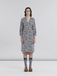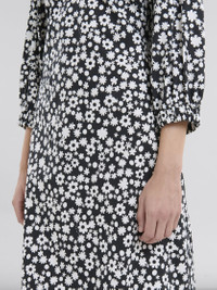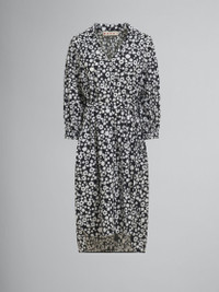 BLACK AND WHITE COTTON POPLIN SHIRT DRESS WITH POP FIELDS MOTIF