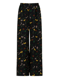 floral-print wide-leg trousers Highlights - Black - Multicoloured floral print - High-rise waistband - Pleated front - Belt loops Made in Italy Composition Outer: Rayon 100% Lining: Cupro 60%, Silk 40%
