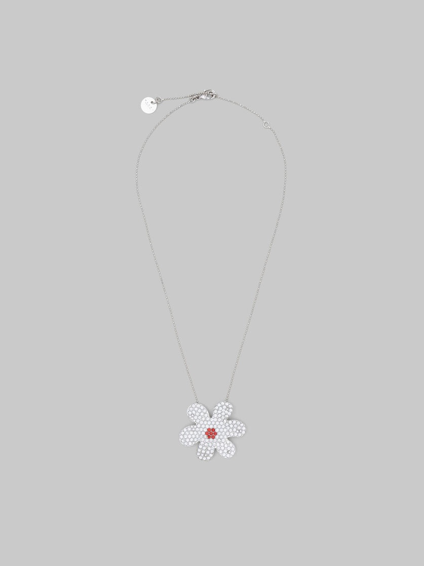 Eco-brass ball chain necklace with palladium finish. Maxi daisy pendant, encrusted with small crystals. Adjustable lobster clasp with Marni plaque. Made in Italy MODEL COMV0488A0P652700W09 COMPOSITION Body: 70% Brass 30% Crystal