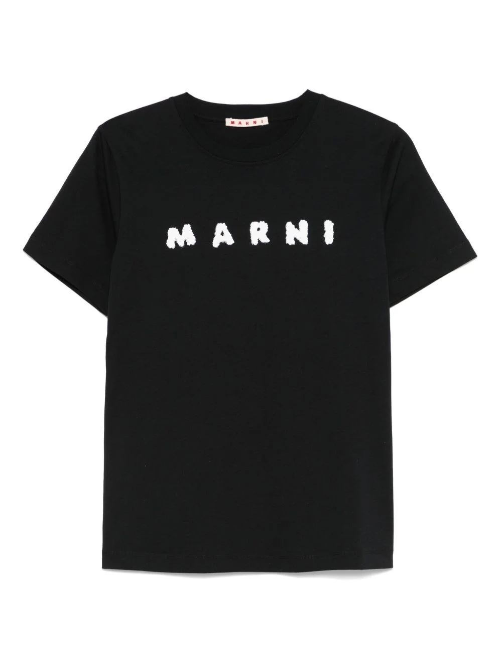 fluffy logo T-shirt Highlights - Black - Fluffy logo lettering - Short sleeves - Crew neck Imported Composition Cotton 100% SIZE & FIT Model measurements Height 5 ft 11 in(1.8 m) Bust/Chest 31.49 in(80 cm) Hips 36.61 in(93 cm) Waist 24.4 in(62 cm) FittingInformation Designed for a relaxed fit, this piece allows for comfort and movement when worn Made from a midweight non-stretch fabric, this piece offers minimal elasticity when worn