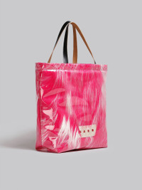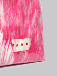 Long faux fur North/South tote bag, wrapped in a clear polyurethane coating. Embroidered Marni patch and leather handles. Made in Italy. DETAILS COMPOSITION Body: 100% Polyurethane - Contrast: 90% Modacrylic 10% Acrylic - Contrast: 100% Calf Leather - Lining: 100% Cotton - Application: 98% Polyester 2% Viscose-Rayon