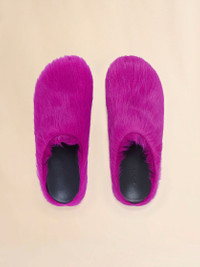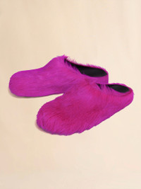 FUCHSIA LONG-HAIR CALFSKIN FUSSBETT SABOT