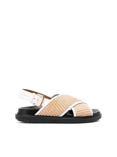 Fussbett slingback sandals Combining modern and artisanal elements, Marni creates a unique shoe that encapsulates the brand's quirky style. Crafted from leather with a chunky silhouette, the pair's crossover straps are designed with woven raffia for a natural element. Made in Italy Composition Leather 100% SIZE & FIT Measurement HEEL 1.37 in(3.5 cm) Sole height 0.98 in(2.5 cm)