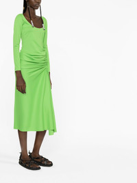 gathered-waist dress This midi dress from Marni encapsulates the brand’s affinity for statement silhouettes and vibrant colours. Gathered at the waist and designed to fall to an asymmetric hem, it’s rendered in a bright green hue. Made in Italy Composition Viscose 65%, Polyamide 30%, Elastane 5% SIZE & FIT Model measurements Height 5 ft 10 in(1.79 m) Bust/Chest 31.1 in(79 cm) Hips 35 in(89 cm) Waist 24 in(61 cm)