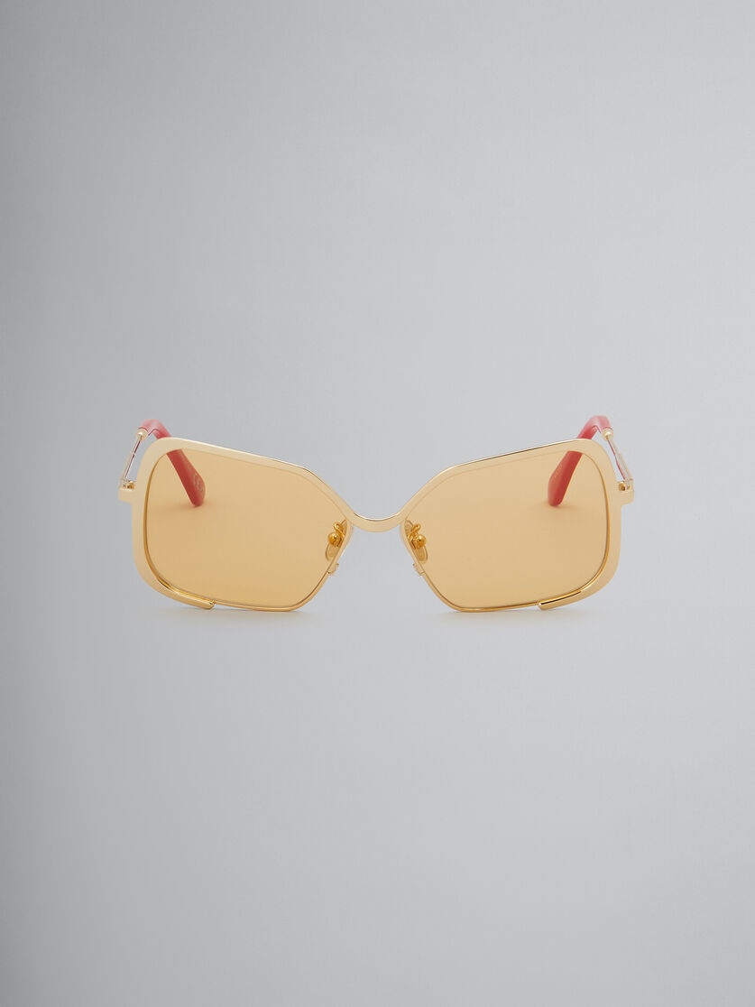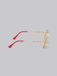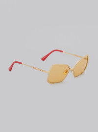Unila sunglasses crafted from sleek metal. Constructed from a single rod forming a soft U-shaped nose bridge. Oversized geometric lenses. Flexible metal temples with coloured acetate tips. Made in Italy MODEL EWME0058A0H37000152Z COMPOSITION Primary Fabric: 10% Acetate 20% Nylon 70% Metal
