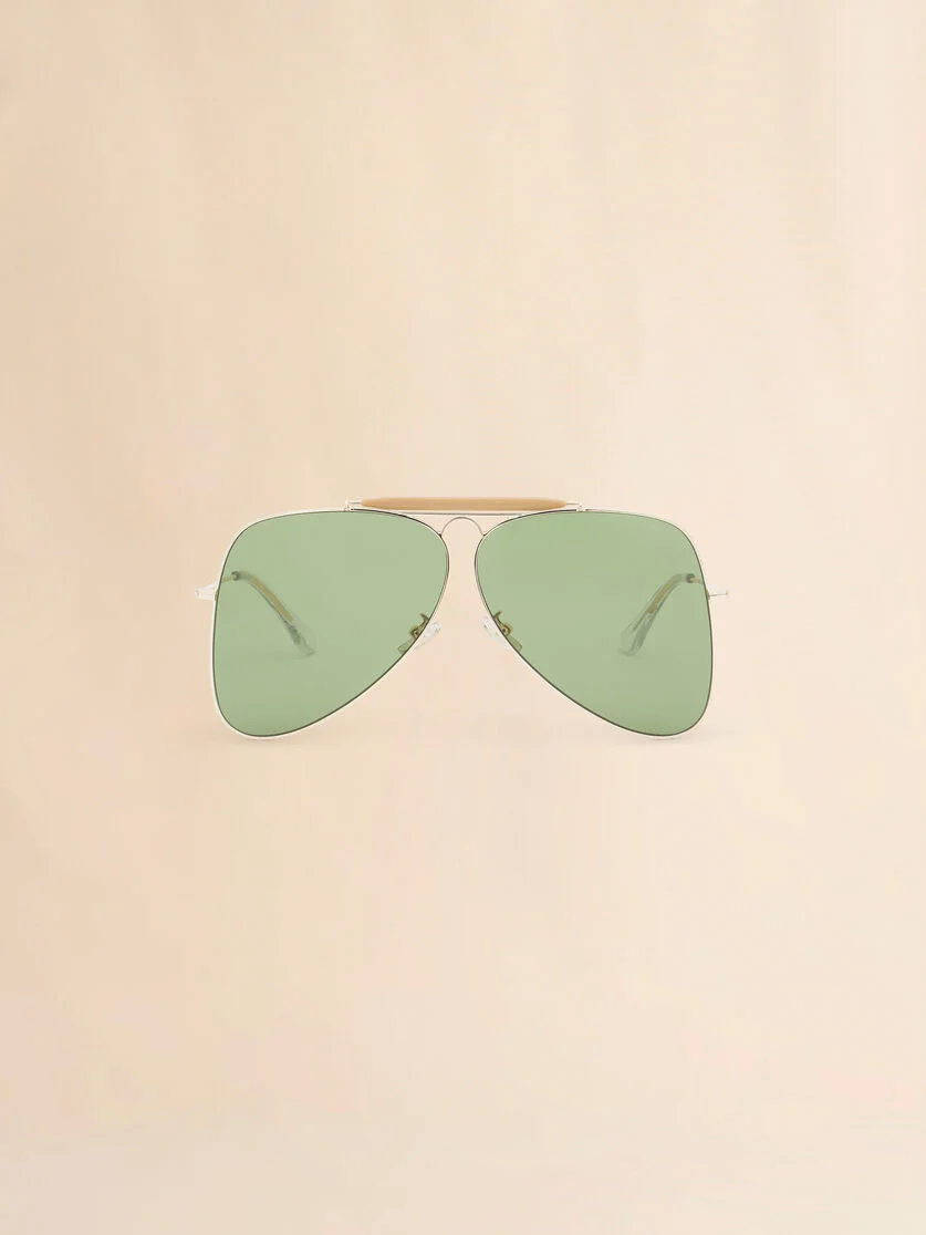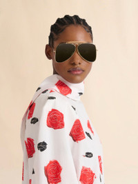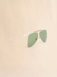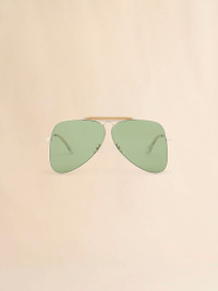 Zalruha sunglasses crafted from shiny metal. Exaggerated pilot shape. Acetate top bar with embossed Marni lettering. Crystal acetate temple tips and logo print on the lens. Made in Italy MODEL EWME00106M0H390001M35 COMPOSITION Material: 70% Metal 10% Acetate 20% Nylon