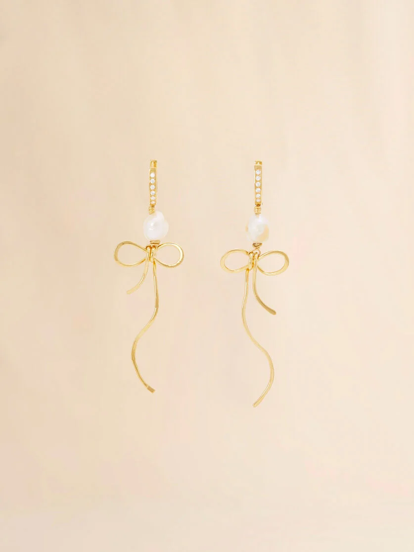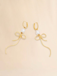 GOLDEN BOW DROP EARRINGS WITH PEARLS
