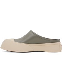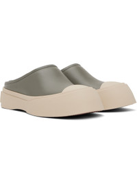 Buffed nappa calfskin slip-on loafers in gray. · Rubber cap toe · Logo embossed at padded calfskin footbed · Buffed calfskin lining · Rubberized logo patch at heel · Treaded rubber platform sole · Platform: H2" Supplier color: Neutral gray Upper: calfskin. Sole: rubber. Made in Italy 251379F121004