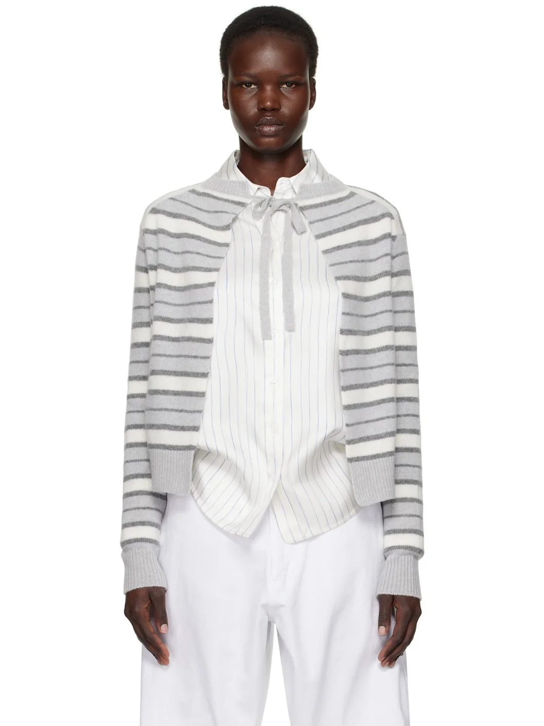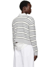 Knit virgin wool- and cashmere-blend sweater. Stripes throughout. · Rib-knit crewneck, hem, and cuffs · Logo embroidered at shoulder · Self-tie fastening at back collar · Open back Supplier color: Sodium 70% virgin wool, 30% cashmere. Made in Italy 251379F096007