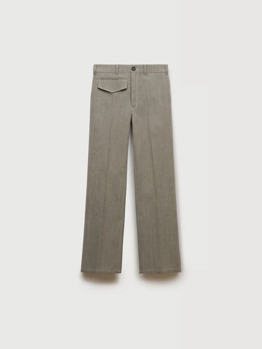 Pants made from virgin wool with a micro-check weave. Subtly flared cut, featuring belt loops and a sartorial-inspired flap pocket. Detailed with contrast stitching. Half-lined. Made in Italy MODEL PAMA0652J0UTWA4600M47