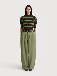 Pants made from cotton canvas. Double pleats and super-elasticated waistband for a voluminous bunched-up look. Finished with turn-up cuffs, slant hip pockets and back welt pockets. Made in Italy MODEL PAMA0646J0UTC64600V18