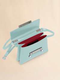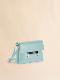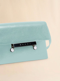 Small Envelope bag made from patent leather with a tactile craquele effect. Semi-rigid construction with two inside compartments. Open pocket in the front one, zip pocket in the back. Adjustable buckled shoulder strap: can be worn as a shoulder bag or crossbody. Flap closure with enamelled Marni clasp. Luxurious sheepskin leather lining. Made in Italy MODEL SBMP0227U0P828700V11 COMPOSITION Body: 100% Calf Leather - Contrast: 100% Calf Leather - Lining: 100% Ovine Leather - Metallic Parts: 100% Brass - Metallic Parts: 100% Zama