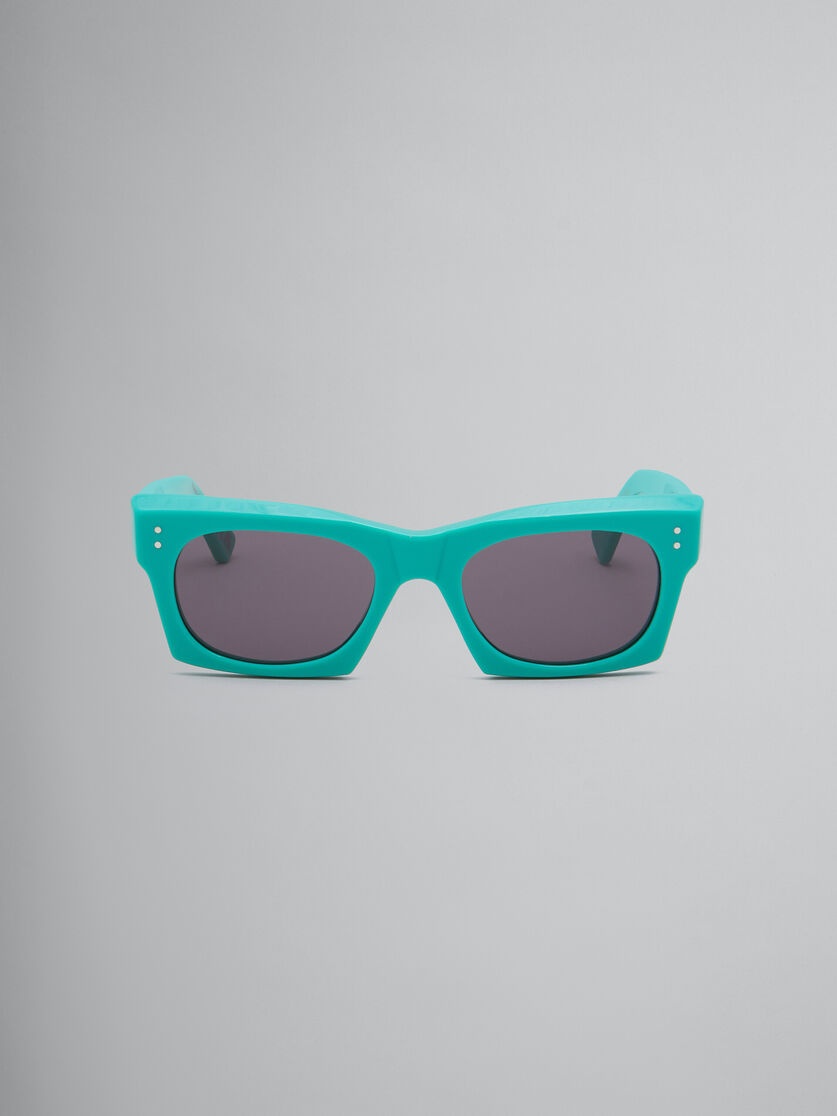 Edku sunglasses made from thick acetate, featuring oval lenses embedded within an angular frame. Bold geometric design with slanted upper rims. Embellished with Marni lettering on the temple. Made in Italy MODEL EWME0055A0H370003TS0 COMPOSITION Primary Fabric: 65% Acetate 20% Nylon 15% Metal