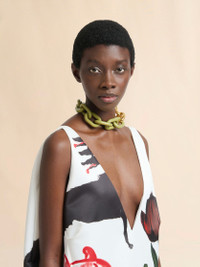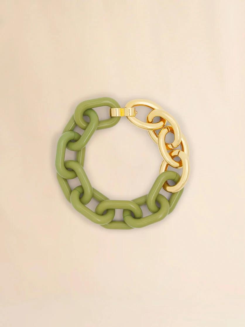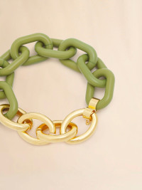 Bi-material chain necklace made from shiny gold-plated brass and bold resin. A reinterpretation of Marni’s signature Leather Chain theme. Logo-engraved clasp. Made in Italy MODEL COMV0556A0P652300V30