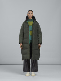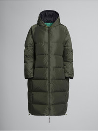 Long reversible down jacket. Long raglan sleeves. Hooded. Two-way zip fastening. Oversized fit. Welt pockets. Inside patch pockets in a contrasting colour. Quilted exterior. Colourblock interior. Elasticated drawstring hem. Made in Italy. DETAILS COMPOSITION Primary Fabric: 100% Polyamide Woven - Coating: 100% Polyurethane - Lining: 100% Polyamide Woven - Coating: 100% Polyurethane - Padding: 80% Duck Down 20% Duck Feather - Padding: 100% Polyester