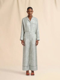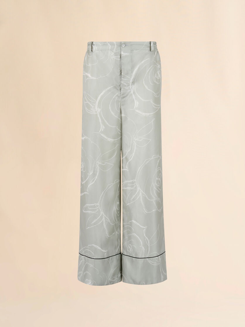 GREEN SILK PALAZZO TROUSERS WITH AURORA PRINT