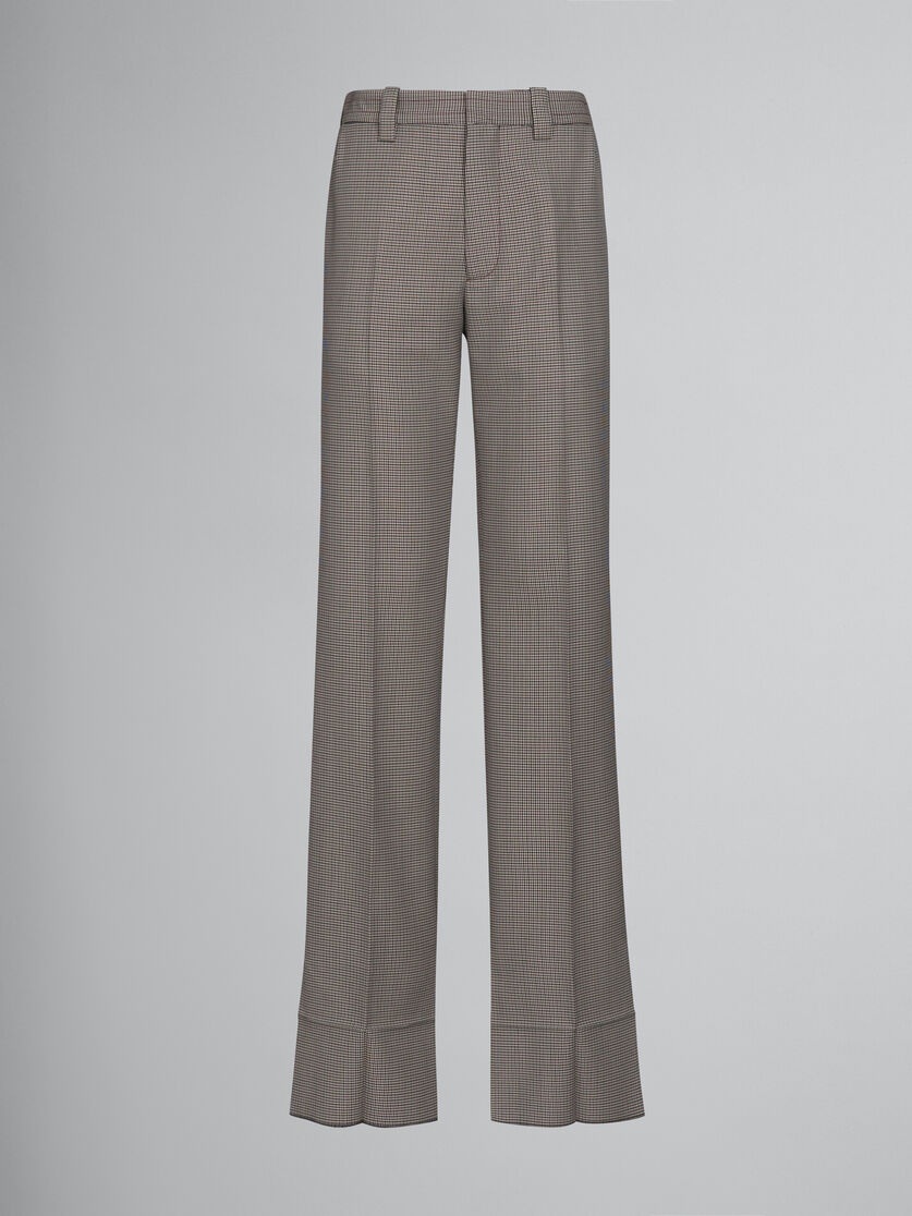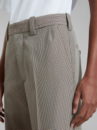 GREY AND RED HOUNDSTOOTH CHECK WOOL TROUSERS
