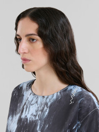 Short T-shirt dress made from lightweight duchess satin. Seasonal Crayon Leopard print, characterised by a distinctive graphic effect. Flared silhouette with round neckline and short dropped sleeves. Rounded hem. Back zip closure. Handcrafted Marni Mending embroidery on the shoulder. Made in Italy MODEL ABMA1342SUUTP782CLN42 FIT The model is 5' 10''. The model is wearing size 40 IT. COMPOSITION Primary Fabric: 100% Polyester Woven - Lining: 60% Cupro Woven 40% Silk Woven