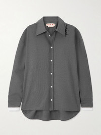 Marni's shirt is hand-embroidered with the label's cursive logo over the left shoulder, making it instantly recognizable to those in the know. It's been made in Italy from gray wool and has a pointed collar and white-tipped buttoned cuffs. Size & Fit - Fits true to size, take your normal size - Those with broad shoulders may wish to take the next size up - Designed for a slightly loose fit - Dropped shoulder seam - Lightweight, non-stretchy fabric - Model is 180cm/ 5'11" and is wearing an IT 40 Model measurements: - Bust: 80cm/31.5" - Waist: 70cm/27.5" - Hip: 93cm/36.5" Details & Care - Gray and white wool - Button fastening through front - 100% virgin wool - Dry clean - Mother-of-pearl: Indonesia