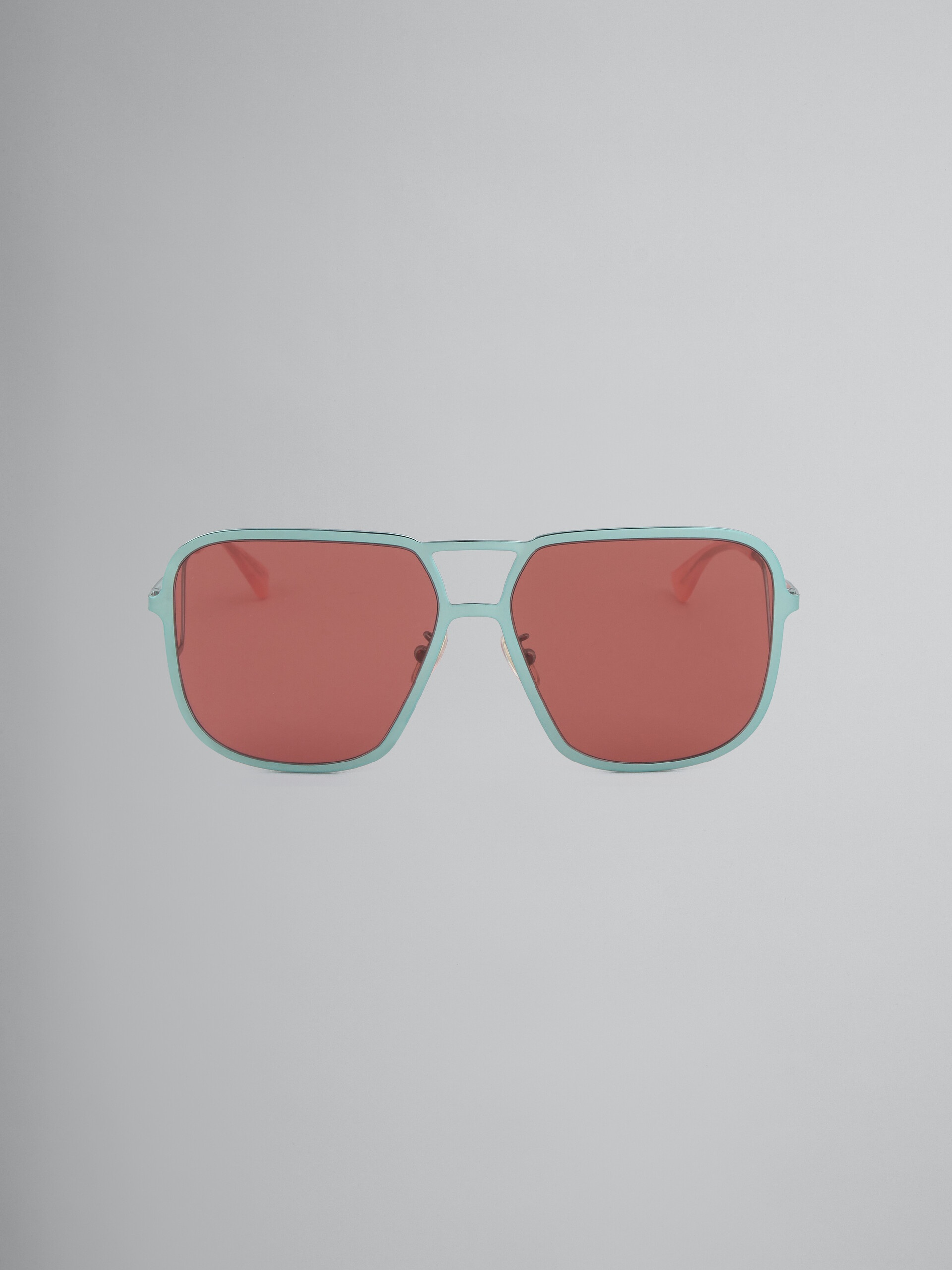 Ha Long Bay sunglasses featuring a caravan shape with double bridge, crafted from nickel silver. Adjustable nose pads. Burgundy bio nyon lenses. Made in Italy. DETAILS COMPOSITION Primary Fabric: 20% Acetate 80% Steel