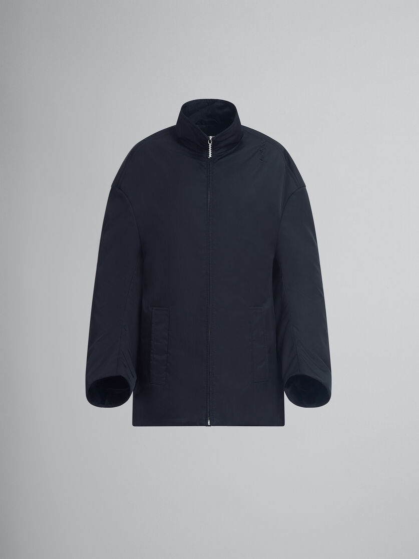 Midi parka in recycled technical twill with a water-repellent finish, lightly padded. Cocoon silhouette with high collar and curved sleeves. Welt pockets. Front zip closure. Handcrafted Marni Mending embroidery on the shoulder. Made in Italy MODEL JKMA0330SWUTN92300N99 COMPOSITION Primary Fabric: 100% Polyamide Woven - Lining: 100% Viscose-Rayon - Padding: 100% Polyester - Pocket Lining: 100% Cotton