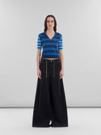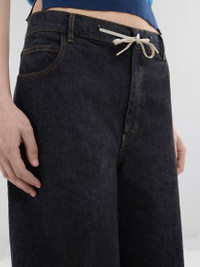 5-pocket jeans made from stretch cotton denim with a marble-dyed wash. Wide palazzo fit with dropped crotch. Shoelace-style drawstring at the waist. Made in Italy MODEL PAJD0519A0USCW94MDN99 FIT The model is 5' 10''. The model is wearing size 40 IT. COMPOSITION Primary Fabric: 97% Cotton Woven 3% Elastan Woven - Pocket Lining: 65% Polyester Woven 35% Cotton Woven - Application: 100% Calf Leather