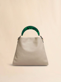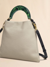 Hobo bag, small size, in soft grained leather with resin handle. Fabric lining with slot pocket inside. Removable and adjustable leather shoulder strap. Gold hardware. Marni gold logo stamped on the front. Made in Italy MODEL SCMP0065U0LV688Z2O35 COMPOSITION Body: 100% Calf Leather - Lining: 100% Cotton - Metallic Parts: 50% Brass 50% Polymethyl Methacrylate - Metallic Parts: 100% Brass - Metallic Parts: 94% Zinc 4% Aluminium 2% Copper