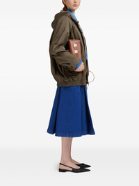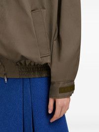 hooded zip-up jacket Highlights - Olive green - Front zip fastening - Side welt pockets - Elasticated hem - Gathered detailing on shoulders Made in Italy Composition Polyester 67%, Cotton 33% Washing instructions Read Manufacturer Guidelines