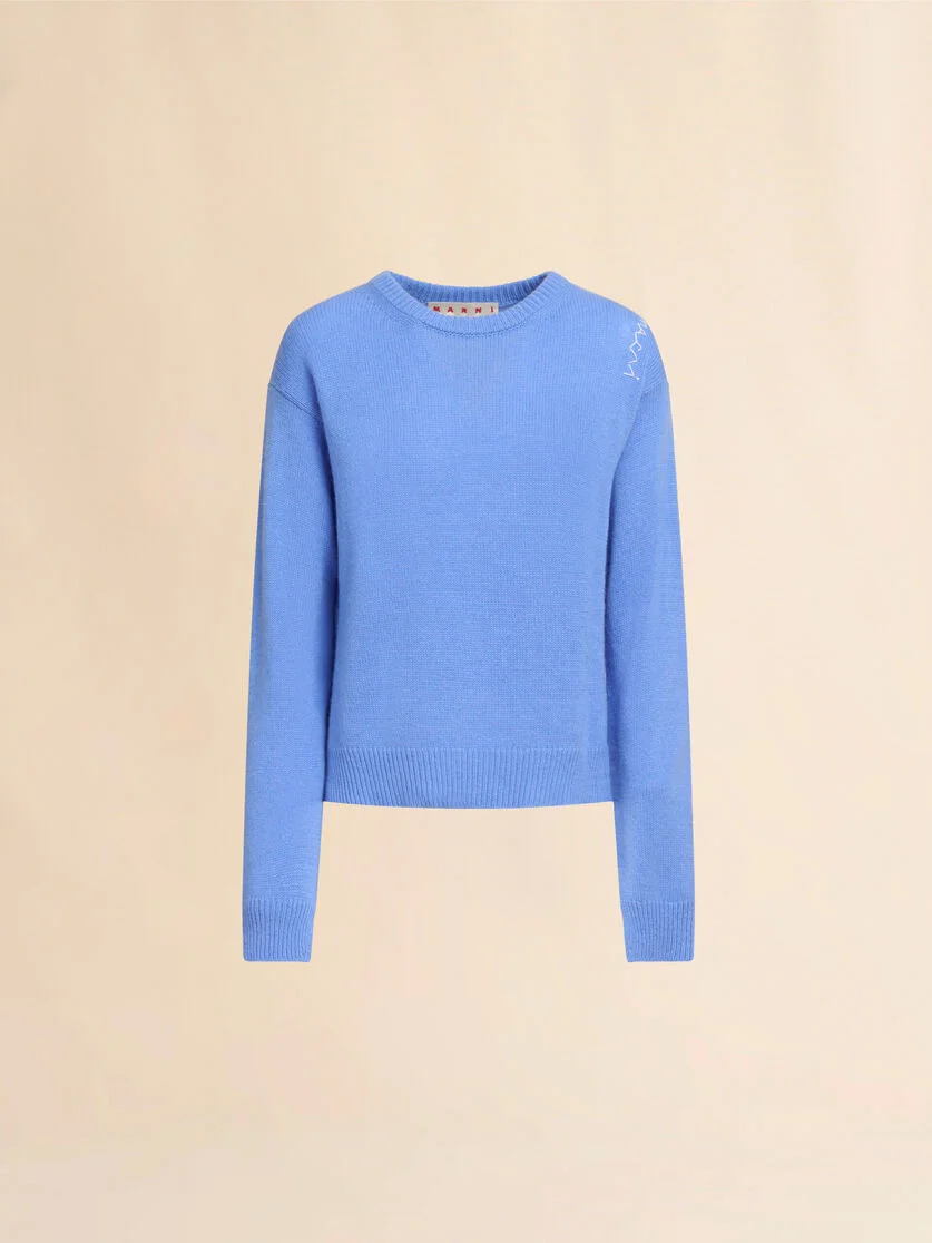 INDIGO BOXY CASHMERE JUMPER WITH MARNI SYMBOL