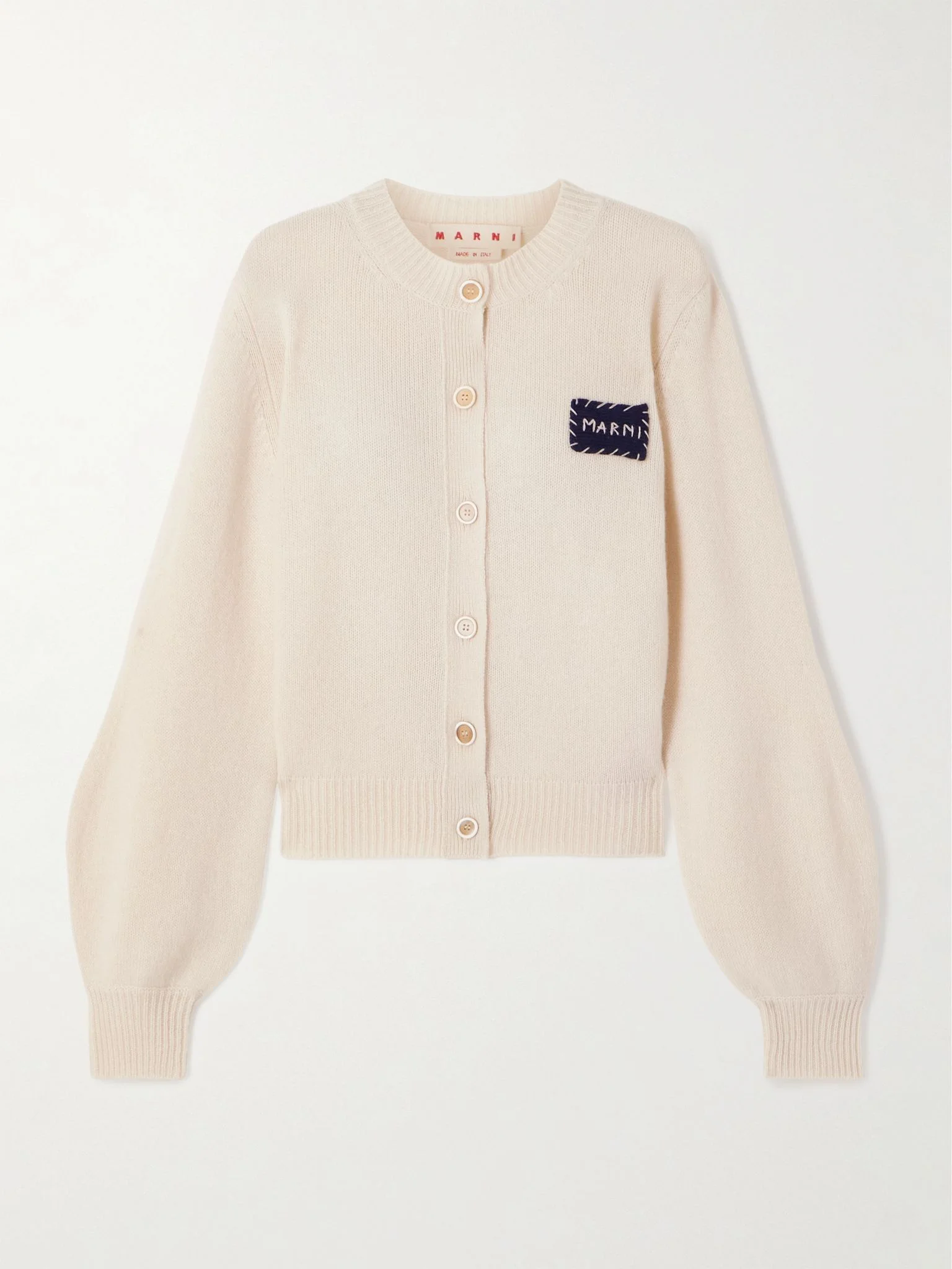 Marni's cardigan is adorned with a patch that's been stitched with the brand's name in a playful way. It's made from pure cashmere for a soft, lightweight handle and has puffy blouson sleeves with ribbed trims. Details & Care - Cream and navy cashmere - Button fastenings through front - 100% cashmere - Dry clean