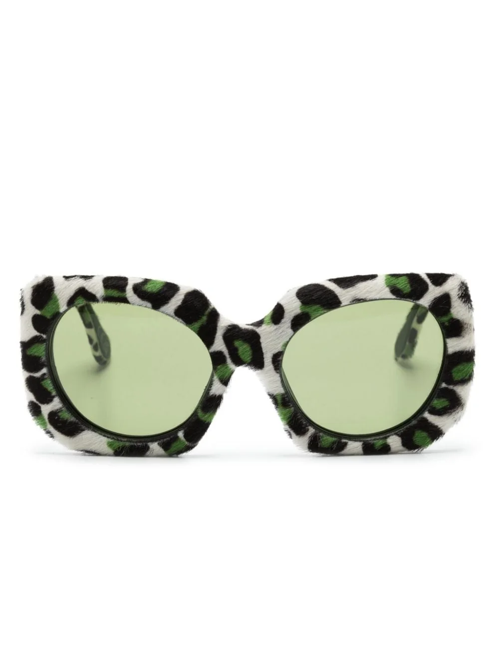 Jellyfish Lake square-frame sunglasses Highlights - White, black, green - Square frame - Faux-fur design - Leopard print frame - Green tinted lenses - Sculpted arms - Curved tips - These glasses come with a protective case. Made In Italy Composition Other Materials 100% SIZE & FIT Measurement Arm Length 5.7 in(14.5 cm) Bridge Width 0.82 in(2.1 cm) Lens Diameter 2.2 in(5.6 cm) Total Width 5.7 in(14.5 cm)